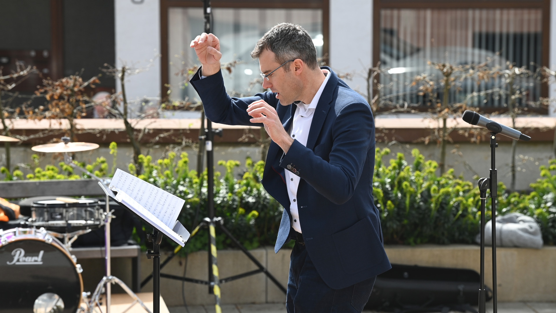 Bezirksposaunenwart Ralph Lange dirigierte die Stücke der Schlussfeier.