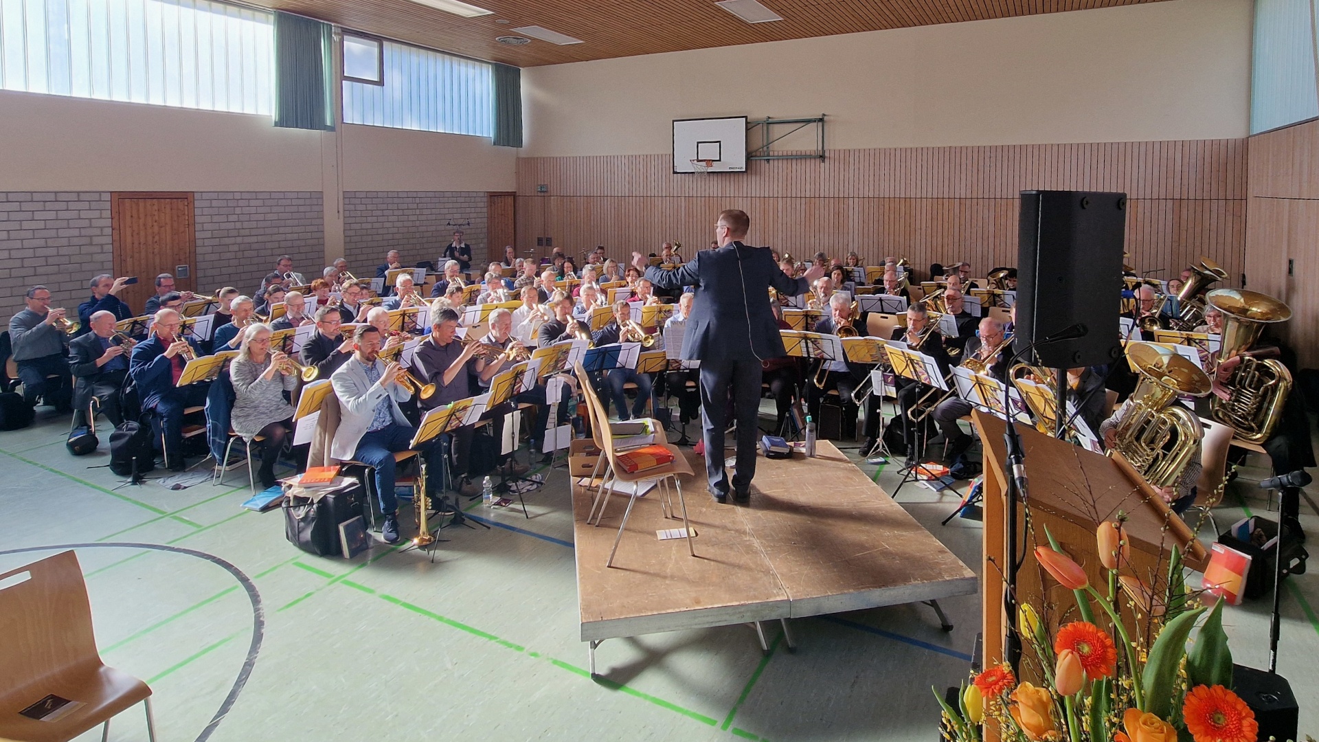 Rund 120 Bläserinnen und Bläser aus dem Bezirk Leonberg musizierten am 30. März 2025 gemeinsam in Wimsheim.